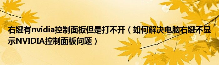 大家好,今天小悦来为大家解答以上问题。右键有nvidia控制面板但是打不开,如何解决电脑右键不显示NVIDIA控制面板问题很多人还不知道,现在让我们一起来看看吧!