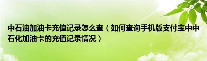 大家好,今天小悦来为大家解答以上问题。中石油加油卡充值记录怎么查,如何查询手机版支付宝中中石化加油卡的充值记录情况很多人还不知道,现在让我们一起来看看吧!