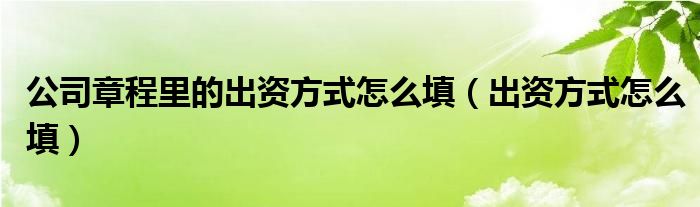 关于公司章程里的出资方式怎么填,出资方式怎么填这个很多人还不知道,今天菲菲来为大家解答以上的问题,现在让我们一起来看看吧!