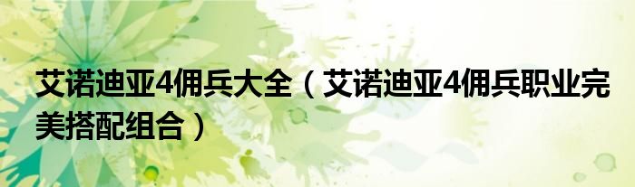 大家好,今天小悦来为大家解答以上问题。艾诺迪亚4佣兵大全,艾诺迪亚4佣兵职业完美搭配组合很多人还不知道,现在让我们一起来看看吧!