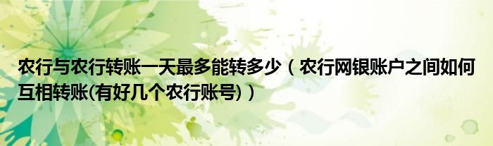 大家好,今天小悦来为大家解答以上问题。农行与农行转账一天最多能转多少,农行网银账户之间如何互相转账(有好几个农行账号)很多人还不知道,现在让我们一起来看看吧!