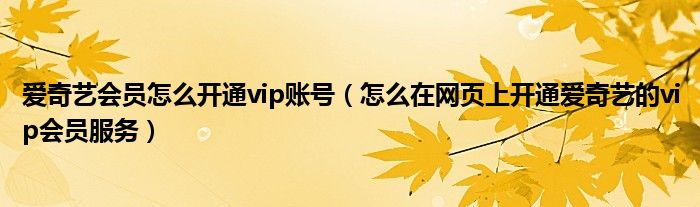大家好,今天小悦来为大家解答以上问题。爱奇艺会员怎么开通vip账号,怎么在网页上开通爱奇艺的vip会员服务很多人还不知道,现在让我们一起来看看吧!