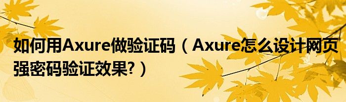 大家好,今天小悦来为大家解答以上问题。如何用Axure做验证码,Axure怎么设计网页强密码验证效果?很多人还不知道,现在让我们一起来看看吧!