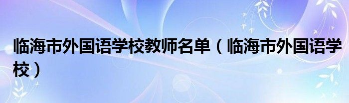 关于临海市外国语学校教师名单,临海市外国语学校这个很多人还不知道,今天菲菲来为大家解答以上的问题,现在让我们一起来看看吧!
