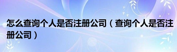 关于怎么查询个人是否注册公司,查询个人是否注册公司这个很多人还不知道,今天菲菲来为大家解答以上的问题,现在让我们一起来看看吧!