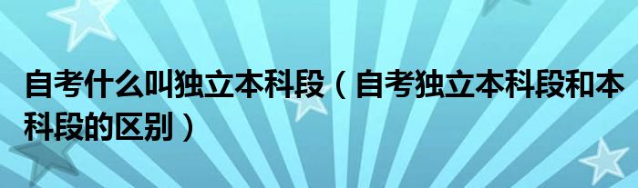 关于自考什么叫独立本科段,自考独立本科段和本科段的区别这个很多人还不知道,今天菲菲来为大家解答以上的问题,现在让我们一起来看看吧!