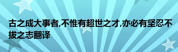 关于古之成大事者,不惟有超世之才,亦必有坚忍不拔之志翻译这个很多人还不知道,今天菲菲来为大家解答以上的问题,现在让我们一起来看看吧!