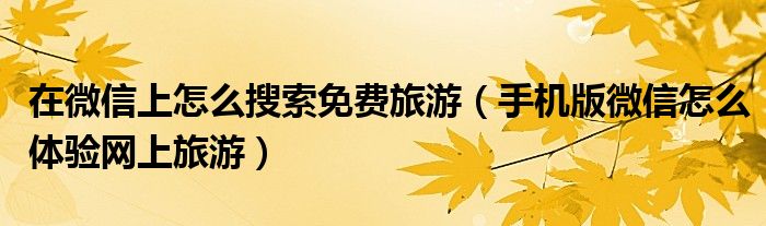 大家好,今天小悦来为大家解答以上问题。在微信上怎么搜索免费旅游,手机版微信怎么体验网上旅游很多人还不知道,现在让我们一起来看看吧!