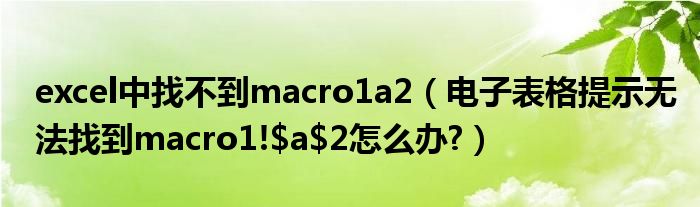 大家好,今天小悦来为大家解答以上问题。excel中找不到macro1a2,电子表格提示无法找到macro1!$a$2怎么办?很多人还不知道,现在让我们一起来看看吧!