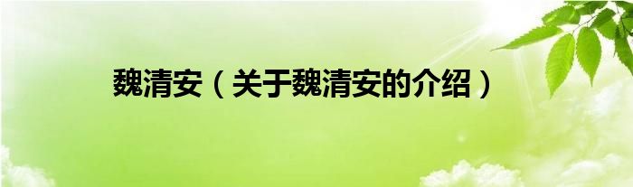 魏清安(关于魏清安的介绍)