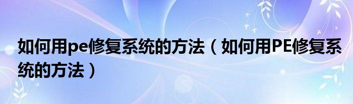大家好,小太来为大家解答以上问题。如何用pe修复系统的方法,如何用PE修复系统的方法很多人还不知道,现在让我们一起来看看吧!