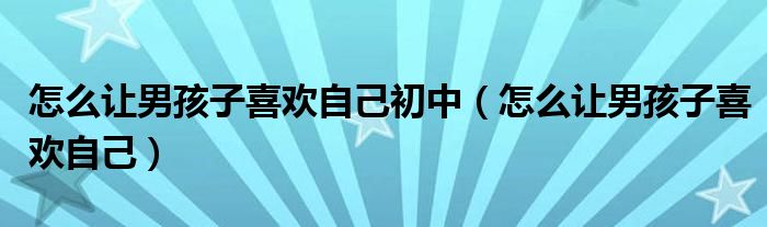 关于怎么让男孩子喜欢自己初中,怎么让男孩子喜欢自己这个很多人还不知道,今天菲菲来为大家解答以上的问题,现在让我们一起来看看吧!