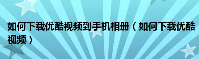 大家好,雨雨来为大家解答以上问题,如何下载优酷视频到手机相册,如何下载优酷视频很多人还不知道,现在让我们一起来看看吧!