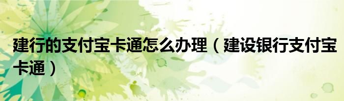 建行的支付宝卡通怎么办理(建设银行支付宝卡通)