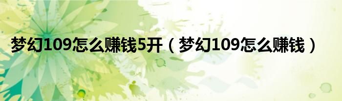 关于梦幻109怎么赚钱5开,梦幻109怎么赚钱这个很多人还不知道,今天菲菲来为大家解答以上的问题,现在让我们一起来看看吧!