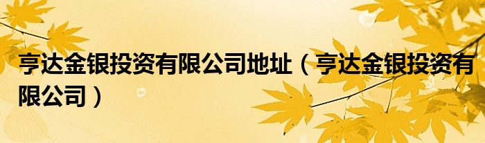 关于亨达金银投资有限公司地址,亨达金银投资有限公司这个很多人还不知道,今天菲菲来为大家解答以上的问题,现在让我们一起来看看吧!
