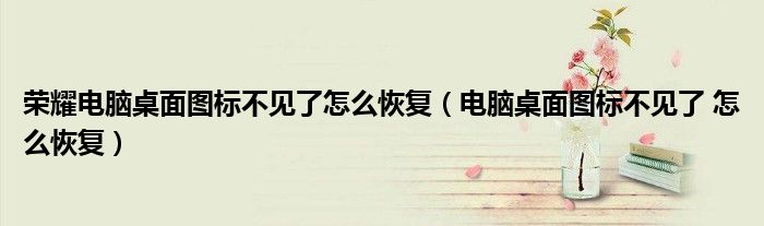 关于荣耀电脑桌面图标不见了怎么恢复,电脑桌面图标不见了 怎么恢复这个很多人还不知道,今天菲菲来为大家解答以上的问题,现在让我们一起来看看吧!