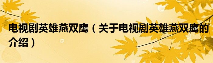 大家好,今天小乐来为大家解答以上的问题。电视剧英雄燕双鹰,关于电视剧英雄燕双鹰的介绍很多人还不知道,现在让我们一起来看看吧!