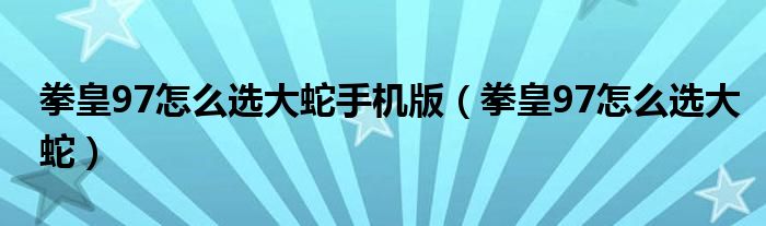 拳皇97怎么选大蛇手机版(拳皇97怎么选大蛇)