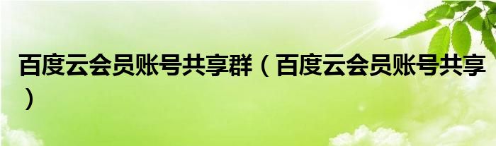 大家好,雨雨来为大家解答以上问题,百度云会员账号共享群,百度云会员账号共享很多人还不知道,现在让我们一起来看看吧!