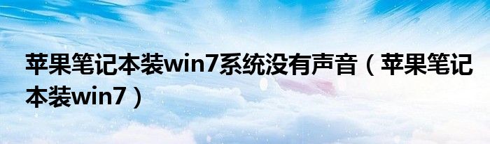 大家好,雨雨来为大家解答以上问题,苹果笔记本装win7系统没有声音,苹果笔记本装win7很多人还不知道,现在让我们一起来看看吧!