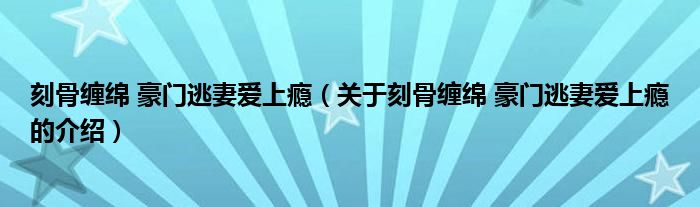 刻骨缠绵 豪门逃妻爱上瘾(关于刻骨缠绵 豪门逃妻爱上瘾的介绍)