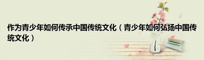 关于作为青少年如何传承中国传统文化,青少年如何弘扬中国传统文化这个很多人还不知道,今天菲菲来为大家解答以上的问题,现在让我们一起来看看吧!