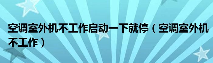 大家好,雨雨来为大家解答以上问题,空调室外机不工作启动一下就停,空调室外机不工作很多人还不知道,现在让我们一起来看看吧!