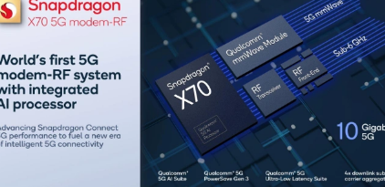 骁龙X70推出Qualcomm5GAI套件,专为低于6GHz和毫米波5G链路的AI驱动优化而设计,以提高速度、覆盖范围、延迟、移动性、链路稳健性和能效,为互联智能边缘提供动力。