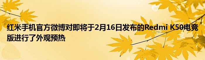 2月10日下午,红米手机官方微博对即将于2月16日发布的Redmi K50电竞版进行了外观预热,机身腰部设计以跑车尾翼为灵感,整体展现出X造型,让人联想到黑鲨游戏手机的系列设计。