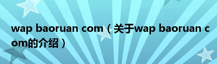 wapbaoruancom(关于wapbaoruancom的介绍)