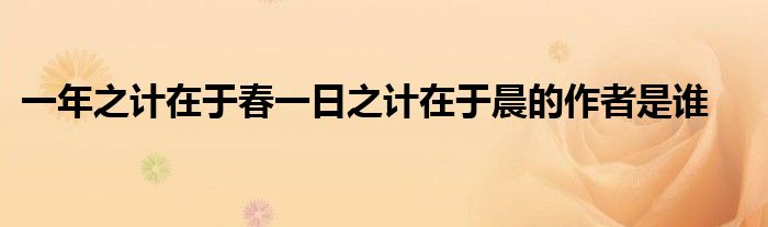 关于一年之计在于春一日之计在于晨的作者是谁这个很多人还不知道,今天菲菲来为大家解答以上的问题,现在让我们一起来看看吧!