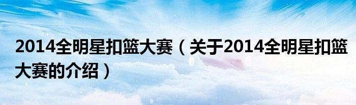 大家好,今天小乐来为大家解答以上的问题。2014全明星扣篮大赛,关于2014全明星扣篮大赛的介绍很多人还不知道,现在让我们一起来看看吧!