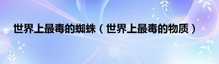 关于世界上最毒的蜘蛛,世界上最毒的物质这个很多人还不知道,今天菲菲来为大家解答以上的问题,现在让我们一起来看看吧!