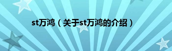 大家好,今天小乐来为大家解答以上的问题。st万鸿,关于st万鸿的介绍很多人还不知道,现在让我们一起来看看吧!