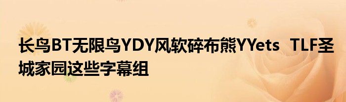 关于长鸟BT无限鸟YDY风软碎布熊YYets TLF圣城家园这些字幕组这个很多人还不知道,今天菲菲来为大家解答以上的问题,现在让我们一起来看看吧!