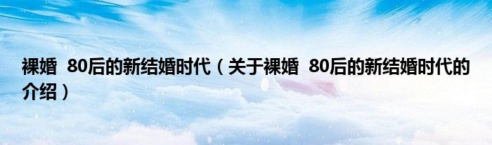 大家好,今天小乐来为大家解答以上的问题。裸婚 80后的新结婚时代,关于裸婚 80后的新结婚时代的介绍很多人还不知道,现在让我们一起来看看吧!
