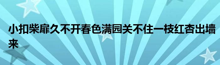 关于小扣柴扉久不开春色满园关不住一枝红杏出墙来这个很多人还不知道,今天菲菲来为大家解答以上的问题,现在让我们一起来看看吧!
