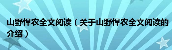 大家好,今天小乐来为大家解答以上的问题。山野悍农全文阅读,关于山野悍农全文阅读的介绍很多人还不知道,现在让我们一起来看看吧!