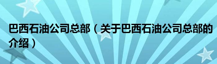 大家好,今天小乐来为大家解答以上的问题。巴西石油公司总部,关于巴西石油公司总部的介绍很多人还不知道,现在让我们一起来看看吧!