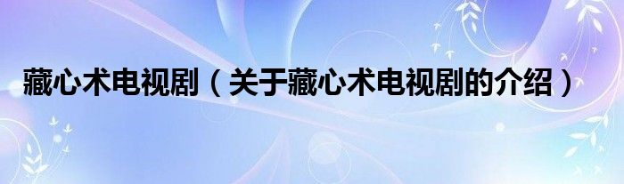 大家好,今天小乐来为大家解答以上的问题。藏心术电视剧,关于藏心术电视剧的介绍很多人还不知道,现在让我们一起来看看吧!