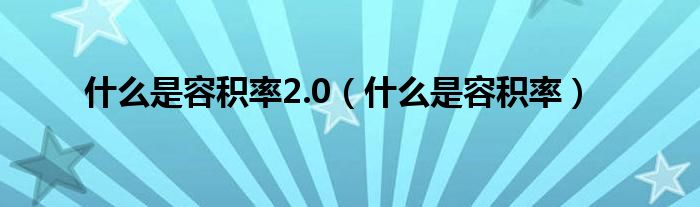 关于什么是容积率2.0,什么是容积率这个很多人还不知道,今天菲菲来为大家解答以上的问题,现在让我们一起来看看吧!