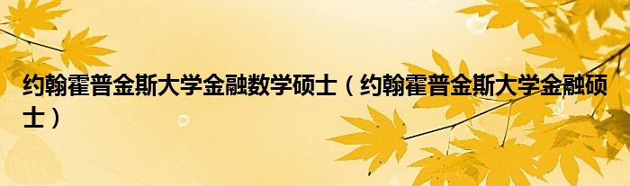 约翰霍普金斯大学金融数学硕士(约翰霍普金斯大学金融硕士)
