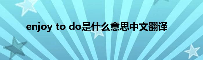 关于enjoy to do是什么意思中文翻译这个很多人还不知道,今天菲菲来为大家解答以上的问题,现在让我们一起来看看吧!