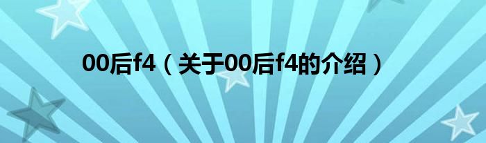 大家好,今天小乐来为大家解答以上的问题。00后f4,关于00后f4的介绍很多人还不知道,现在让我们一起来看看吧!