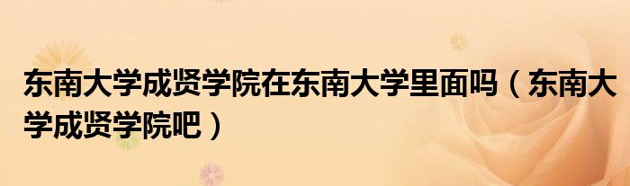 关于东南大学成贤学院在东南大学里面吗,东南大学成贤学院吧这个很多人还不知道,今天菲菲来为大家解答以上的问题,现在让我们一起来看看吧!
