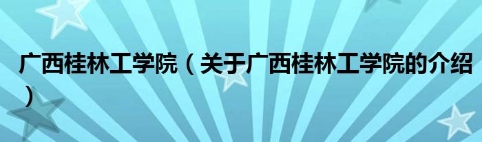 大家好,今天小乐来为大家解答以上的问题。广西桂林工学院,关于广西桂林工学院的介绍很多人还不知道,现在让我们一起来看看吧!