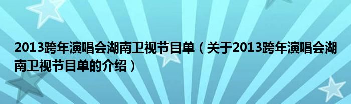 大家好,今天小乐来为大家解答以上的问题。2013跨年演唱会湖南卫视节目单,关于2013跨年演唱会湖南卫视节目单的介绍很多人还不知道,现在让我们一起来看看吧!