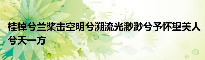 关于桂棹兮兰桨击空明兮溯流光渺渺兮予怀望美人兮天一方这个很多人还不知道,今天菲菲来为大家解答以上的问题,现在让我们一起来看看吧!