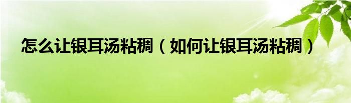 1、首先要看你的银耳是否好(是否属于糯的那种)最简单的方法:1.煮得时间长一点2.多放点糖3.可以放点食用淀粉(平时做菜时勾芡的那种)如果要当面膜用最简单了。
